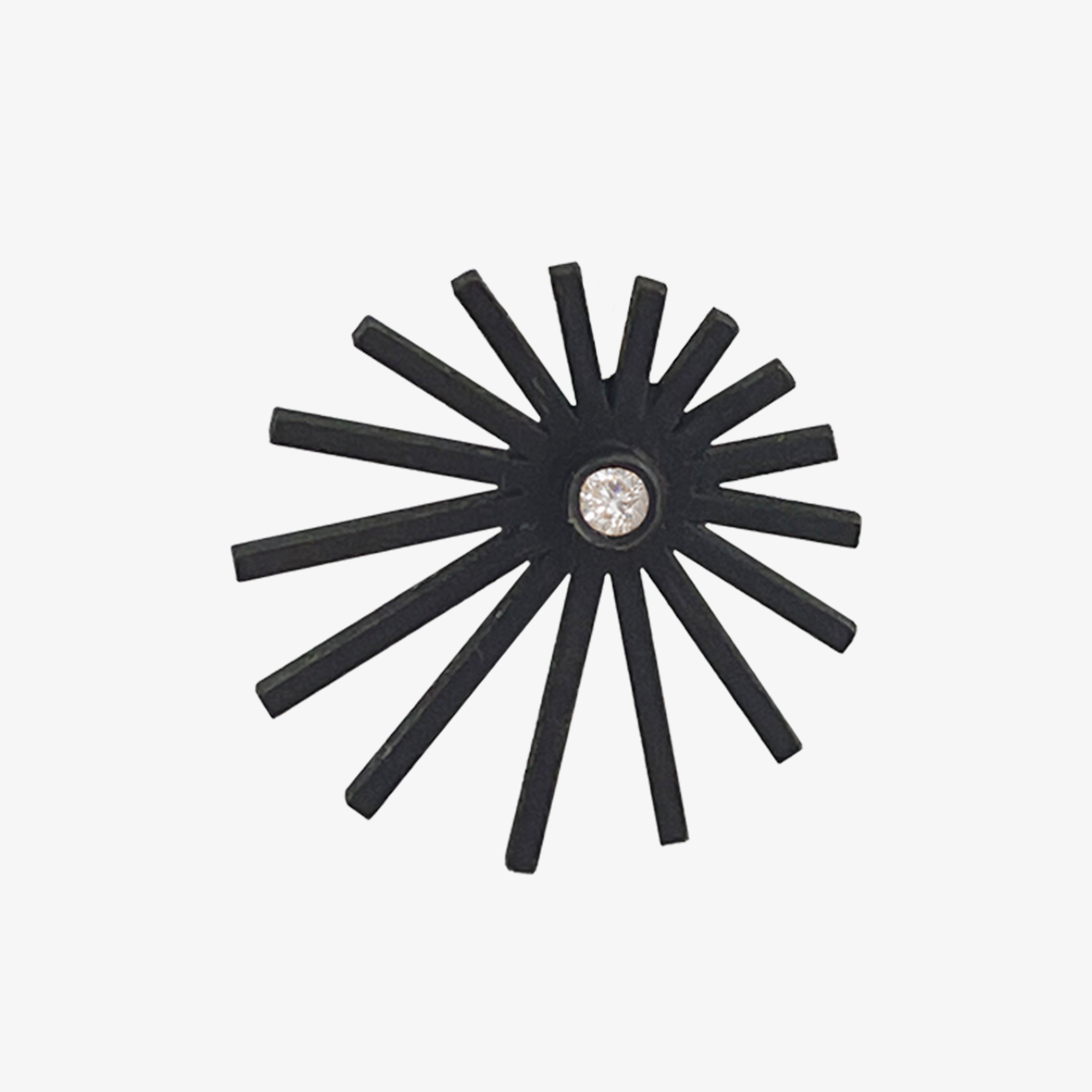 Ear studs in dark oxidised silver with small round diamonds in the centre designed to add a discreet sparkle. Easy and very light, for everyday wear.